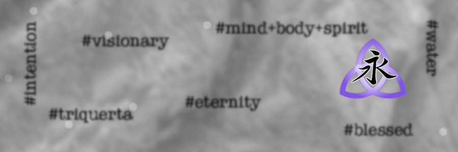 combo of the celtic triquerta (meaning mind, body, and spirit) and japanese kanji for "eternity" (or in chinese "water"). Together it means "eternal life" or "fountain of youth".